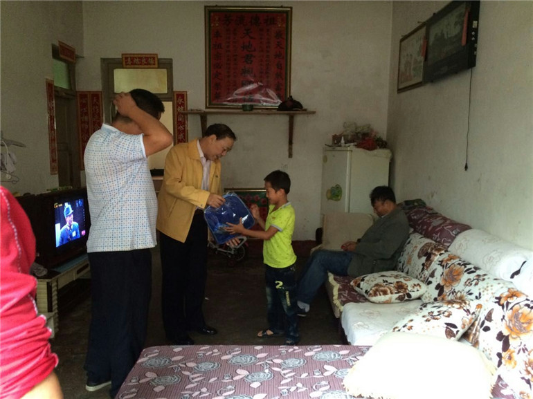楊雨琴,這個(gè)才剛剛6歲的孩子,本因是最幸福最天真的年齡,卻因?yàn)槟赣H的離世和父親的失蹤成了失孤,志愿者們不僅給她送去了書包和文具,還給她送去了入秋和過冬御寒的衣物;李美玉,也是個(gè)6歲的孩子,父母長(zhǎng)期不在身邊,外公外婆又沒有文化,老實(shí)純樸的她每天都必須在學(xué)校里獨(dú)自完成作業(yè)后,回家還要幫年邁的外祖父外祖母做些力所能及的家務(wù),她最大的夢(mèng)想就是長(zhǎng)大后要當(dāng)一名醫(yī)生,根據(jù)她的需要,志愿者還專門給她帶去她喜歡的書籍;王坤寧三兄妹家中,哥哥王坤寧才不滿5歲,最小的弟弟不滿2歲,還咿咿呀呀的在學(xué)說話。三兄妹跟著奶奶和繼爺爺居住在一間用茅草作頂、籬笆作墻的土房子里。我們志愿者走訪到他們家時(shí),天公正好下起了雨,他們也正因?yàn)槲蓓數(shù)钠坡┒χ缅佂肫芭杳χ佑?;走訪到留守兒童徐國(guó)富家,當(dāng)志愿者把書包、文具送給他時(shí),孩子高興地跳了起來,滿屋子的又叫又跳,似乎要讓大家一起和他分享這份我們看似很平常,但對(duì)他來說卻是很幸福的事……