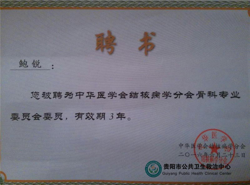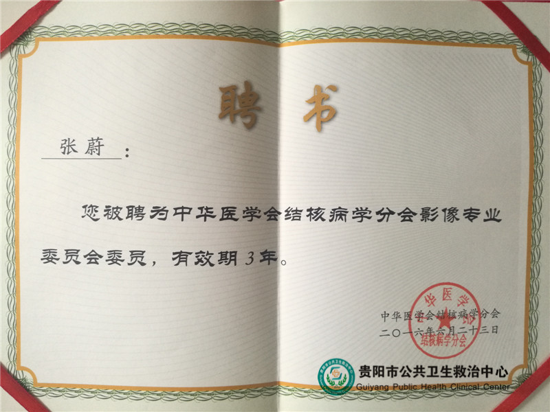 除了享受學(xué)術(shù)上的饕餮盛宴,我院參會代表在本次大會上還喜獲各項殊榮:骨科副主任鮑銳被聘為“中華醫(yī)學(xué)會結(jié)核病學(xué)分會骨科專業(yè)委員會委員”、ICU副主任龍海被聘為“中華醫(yī)學(xué)會結(jié)核病學(xué)分會重癥專業(yè)委員會委員”、放射科副主任張蔚被聘為“中華醫(yī)學(xué)會結(jié)核病學(xué)分會影像專業(yè)委員會委員”。龍海還獲得了大會評選的“最美結(jié)核人”獎。