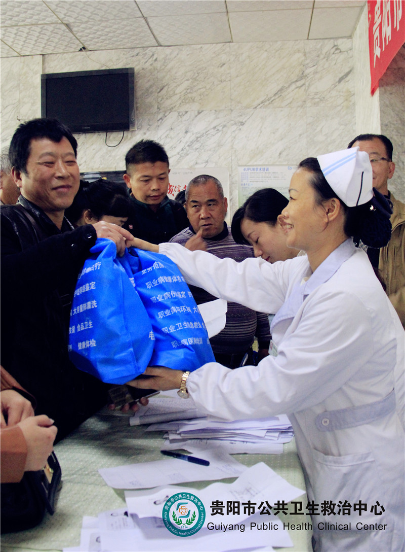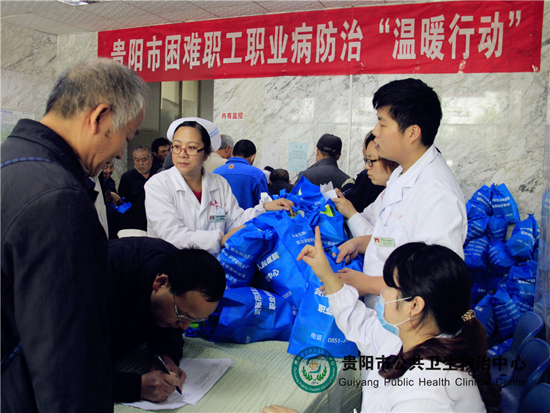 為進一步提高職業(yè)病防治能力,增強作業(yè)人員職業(yè)危害防治意識,從源頭上控制和減少職業(yè)病,切實保護勞動者身體健康。按照《貴陽市工礦企業(yè)勞動者職業(yè)病防治及困難群體“溫暖行動”實施方案》要求,我院從今年8月份開始與市安監(jiān)局聯(lián)合開展了為工礦企業(yè)從業(yè)人員體檢、義診系列活動,取得了良好的效果。11月4日,中心在職業(yè)病樓大廳舉行為困難職工送藥“溫暖行動”,將愛心繼續(xù)延伸。