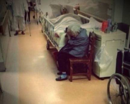 記得曾經(jīng)在網(wǎng)上看到一幅醫(yī)生在病房拍攝的照片:一位白發(fā)蒼蒼的老大爺躺在病床上輸液,旁邊是與他一樣滿
