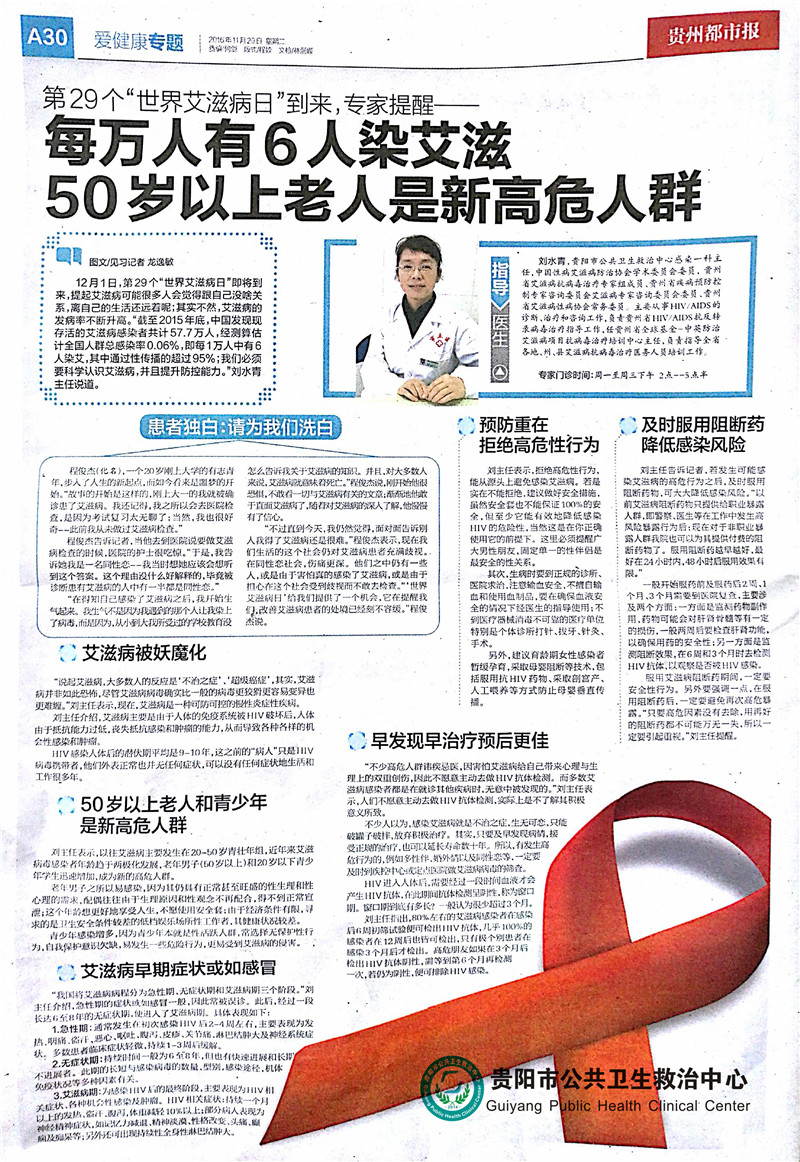 感染一科劉水青主任接受《貴州都市報(bào)》專(zhuān)訪,整版報(bào)道艾滋病防治知識(shí)