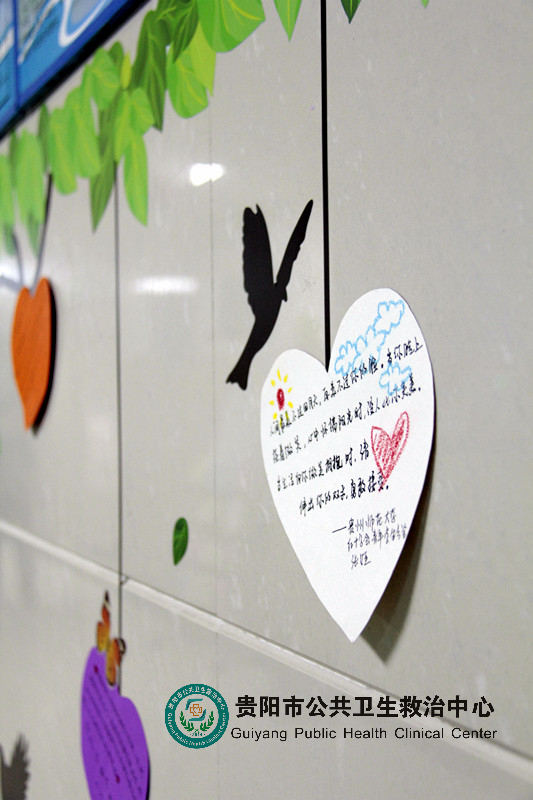 11月28日,社會(huì)愛(ài)心團(tuán)體購(gòu)買(mǎi)慰問(wèn)品到我院感染科慰問(wèn)看望艾滋病患者,鼓勵(lì)他們勇敢面對(duì)生活。愛(ài)心人士在病區(qū)走廊布置了溫馨的卡片與醫(yī)務(wù)人員合影。