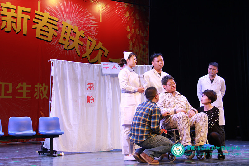 迎春聯(lián)歡會在革命歌舞《太陽最紅毛主席最親》中拉開序幕,白衣天使們以靚麗的形象紛紛登上舞臺,用歌舞、小品、相聲等形式,表達(dá)對新春的美好期盼,對醫(yī)院和諧平安、發(fā)展壯大的衷心祝愿。節(jié)目全部由職工自編自演,大家把對醫(yī)院的愛和祝福融入到節(jié)目中,內(nèi)容豐富經(jīng)典,讓大家享受了一道豐盛的文化盛宴。內(nèi)四、內(nèi)五科舞蹈《洗刷刷》結(jié)合醫(yī)務(wù)人員手衛(wèi)生要求,上演了一場可愛的細(xì)菌、酒精大戰(zhàn)。職業(yè)病科、社區(qū)等傾情演繹的情景舞蹈劇《從你的全世界經(jīng)過》,生動描述了一位臨床醫(yī)生的的職業(yè)成長和各種戲劇化的心路歷程。財務(wù)科的舞蹈《我的中國夢》絢麗的舞臺效果、精心的創(chuàng)意編排掀起了整臺晚會的高潮。除了歌舞,還不乏語言類的優(yōu)秀節(jié)目,每一個作品都融入了行業(yè)主旋律和科室特色。小品《365個祝?!访枋隽送饪漆t(yī)生拒收紅包的工作場景,結(jié)尾的祝福讓觀眾們笑中帶淚。相聲《365個祝?!吠ㄟ^傳統(tǒng)表現(xiàn)手法向大家介紹了檢驗科的工作點滴。結(jié)核科的快板《中心頌》,說辭朗朗上口、手里的快板也打的堪稱專業(yè)水平,他們把醫(yī)院的黨風(fēng)廉政建設(shè)、醫(yī)德醫(yī)風(fēng)、醫(yī)療質(zhì)量管理等用押韻的語言道出,引得臺下叫好聲不斷,精彩的表演贏得現(xiàn)場觀眾的陣陣掌聲和喝彩聲