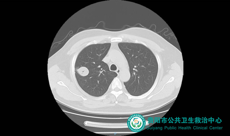 患者因“咳嗽、咳痰1月余”入院。入院時胸部CT提示:右上肺類圓形腫塊,考慮肺結核球。入院后積極完善相關檢查,排除手術禁忌癥后由我院胸外科和麻醉科聯(lián)合為患者實施了目前國內(nèi)領先的麻醉、手術方式——非氣管內(nèi)插管全身麻醉下單孔胸腔鏡手術。
