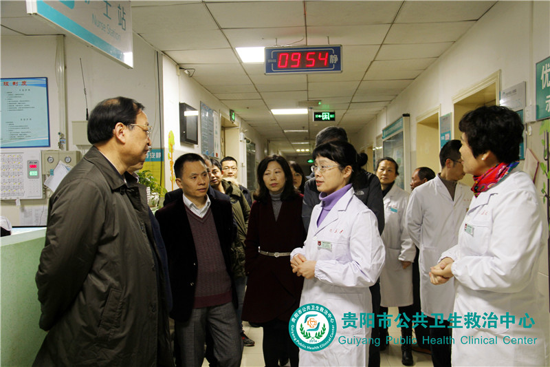 王國強主任一行察看了公衛(wèi)中心感染科門診和感染一科病區(qū),現(xiàn)場聽取了中心主任劉建西和感染一科劉水青主任工作匯報,尤其是艾滋病母嬰阻斷工作。王國強主任對公衛(wèi)中心艾滋病防治工作表示肯定。他指出,貴州省在艾滋病防治工作中創(chuàng)造了很好的經(jīng)驗,防治艾滋病的社會組織在艾滋病高危人群中加強了檢測、宣傳咨詢等服務;貴陽市公共衛(wèi)生救治中心在艾滋病治療方面做了大量工作,抗病毒治療流失率明顯降低,治療成功率顯著提升.王國強主任與醫(yī)務人員親切交流并合影留念。