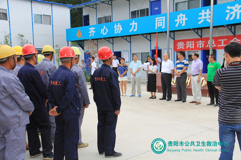 為進一步做好暑期安全生產(chǎn)、防暑降溫工作,確保廣大農(nóng)民工身心健康,及時把黨和政府的關(guān)懷送到戰(zhàn)斗在重點工程一線的廣大建設(shè)者中,8月3日下午,貴陽市總工會“盛夏送清涼”活動組一行來到貴陽市公共衛(wèi)生救治中心建設(shè)項目下壩施工現(xiàn)場,為大家送來了2500斤西瓜和100箱礦泉,室總工會領(lǐng)導向冒酷暑戰(zhàn)高溫仍然堅持在施工一線的工人進行慰問,送去了工會組織的關(guān)懷和火熱盛夏的清涼。市人大常委會副主任、市總工會主席李志鵬同志為工地先進班組授“工人先鋒號”旗幟和牌匾。市醫(yī)管集團總經(jīng)理劉隆平、公衛(wèi)中心工會主席鄧玉瓊、院辦主任王湘筑、黨辦主任唐瑛及項目辦負責人覃小軍等同志參加了慰問活動。