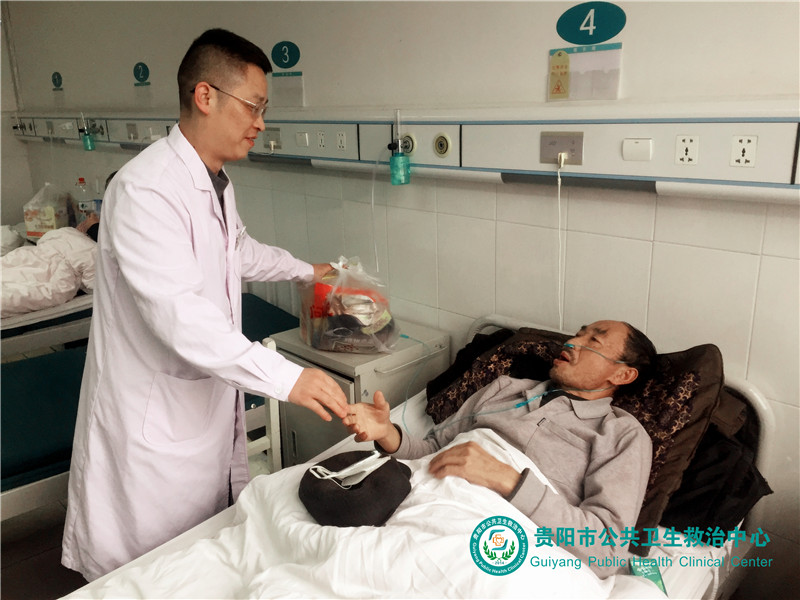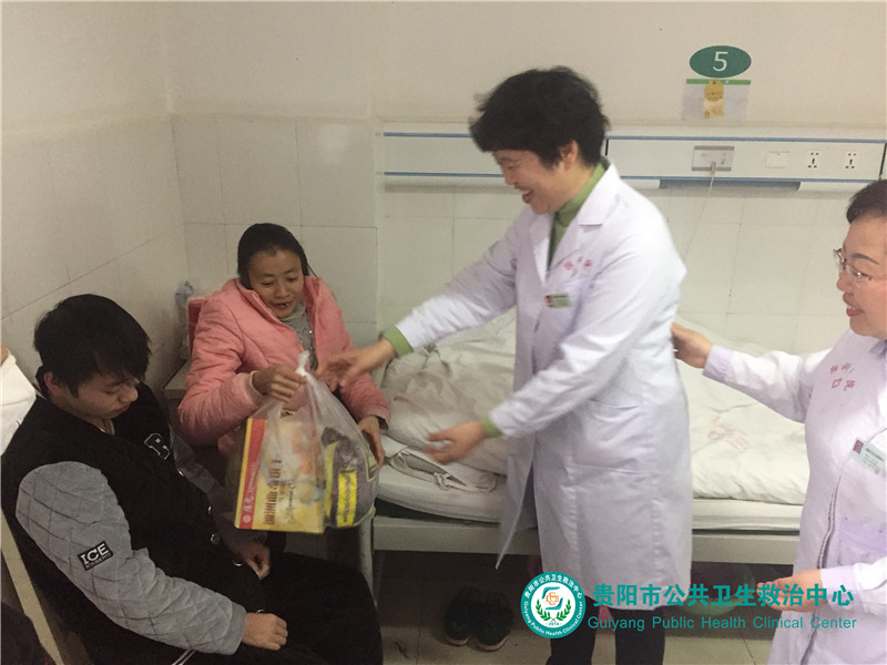 中心領(lǐng)導(dǎo)節(jié)前慰問住院患者,為他們送去營養(yǎng)品和健康的祝福。