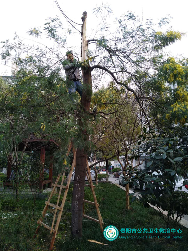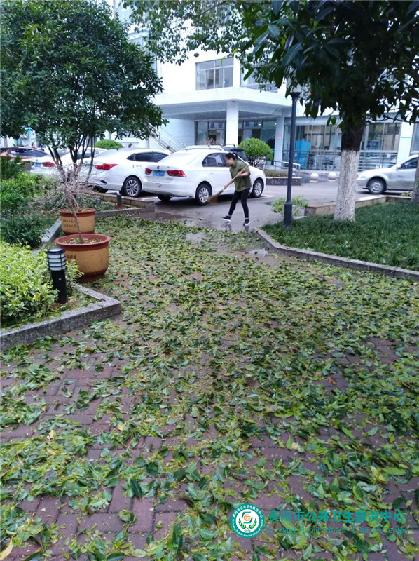 清掃院區(qū)殘留冰雹、落葉,修剪斷裂樹枝
