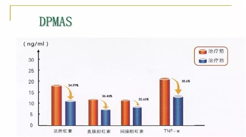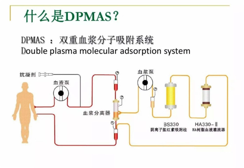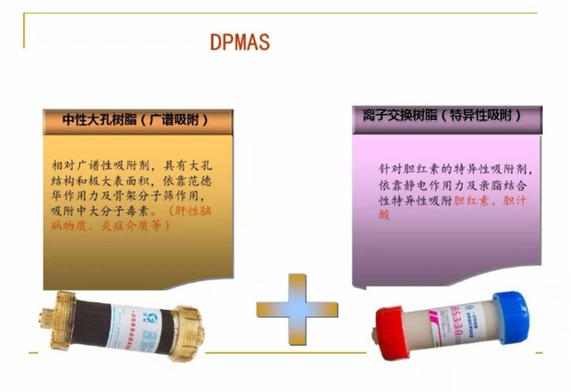 DPMAS采用離子交換樹脂(BS330) 和中性大孔樹脂(HA330 -Ⅱ)兩種吸附劑聯(lián)合應用,增加體內(nèi)各種毒素的清除能力,迅速改善黃疸癥狀的同時清除炎性介質(zhì)等有害物質(zhì)的,提高救治成功率,改善患者預后。目前DPMAS治療模式已經(jīng)成為臨床治療重癥肝炎的常用手段之一。