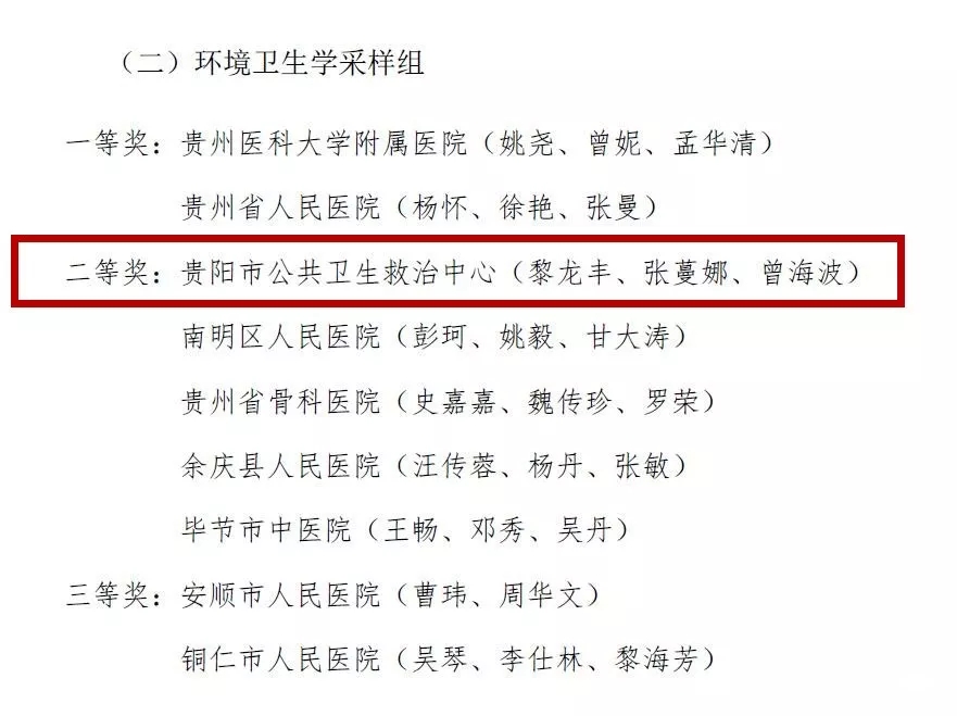 公衛(wèi)中心唐忠琴、劉佳同志獲個人防護(hù)組二等獎,黎龍豐、張蔓娜、曾海波同志獲環(huán)境衛(wèi)生學(xué)采樣組二等獎。