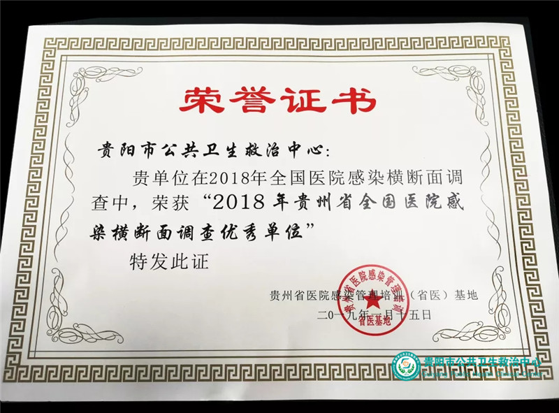 為貫徹落實(shí)《醫(yī)院感染管理辦法》《醫(yī)院感染監(jiān)測規(guī)范》《抗菌藥物臨床應(yīng)用指導(dǎo)原則》等法規(guī),不斷提高醫(yī)務(wù)人員醫(yī)院感染控制水平,貴陽市公共衛(wèi)生救治中心院感科按照貴州省醫(yī)院感染管理培訓(xùn)基地的要求,組織中心參加了全國醫(yī)院感染橫斷面調(diào)查工作,并獲得“2018年度貴州省全國醫(yī)院感染橫斷面調(diào)查優(yōu)秀單位”榮譽(yù)稱號。