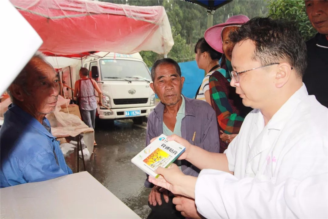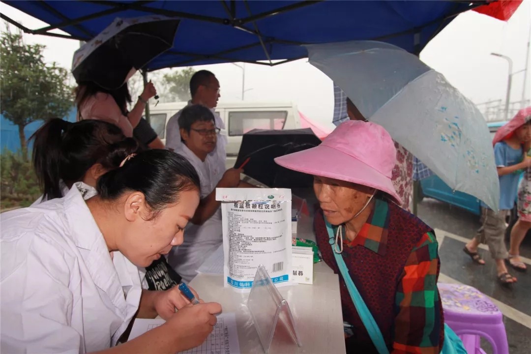 突然天空下起了大雨,雨水吹打進義診棚里,坐在風(fēng)口的骨外科主任鮑銳和婦產(chǎn)科主任劉艷賓的頭發(fā)和鞋子瞬間被打濕??吹矫坝甏掖亿s來的患者,專家們繼續(xù)在雨中講解,直到所有患者滿意離去,他們才撐傘離場。