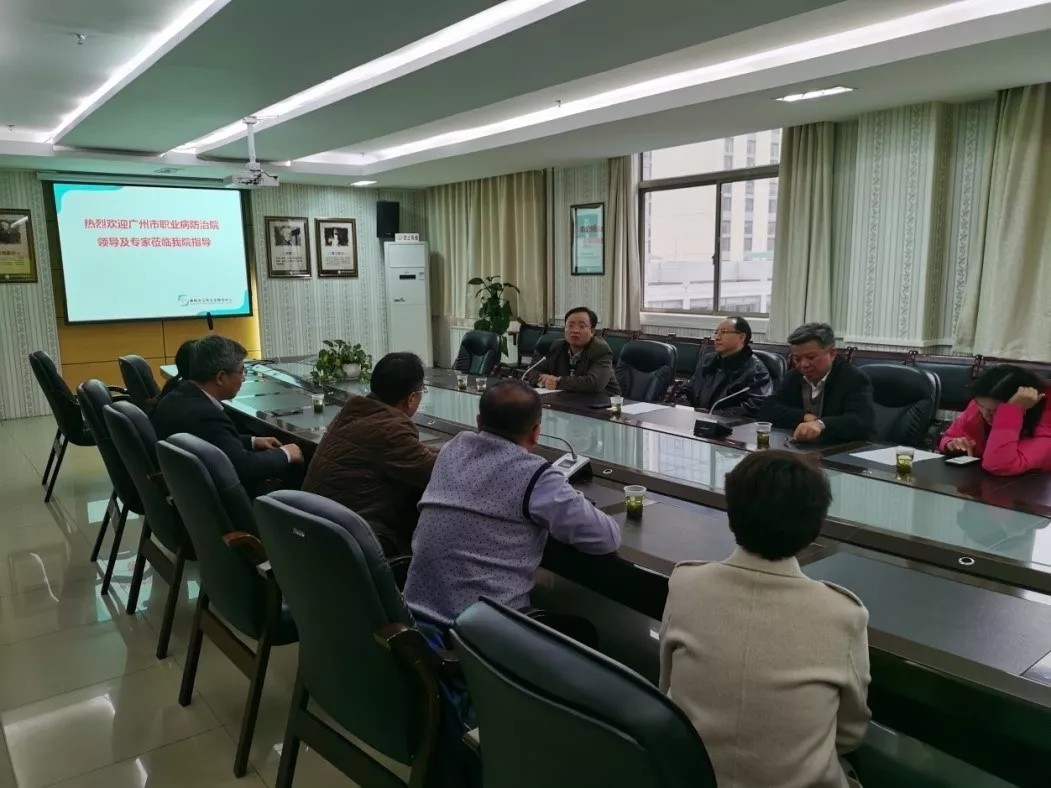 2019年12月28日下午,廣州市職業(yè)病防治院黃穎烽院長、劉移民副院長等領(lǐng)導(dǎo)及專家一行4人到貴陽市公共衛(wèi)生救治中心參觀和交流。中心黨委委員、副主任喻琨帶領(lǐng)職業(yè)病科、塵肺科等相關(guān)科室負(fù)責(zé)同志先陪同廣州市職業(yè)病防治院領(lǐng)導(dǎo)及專家參觀了職業(yè)病綜合大樓。