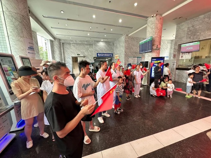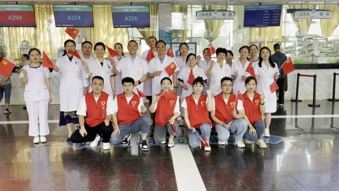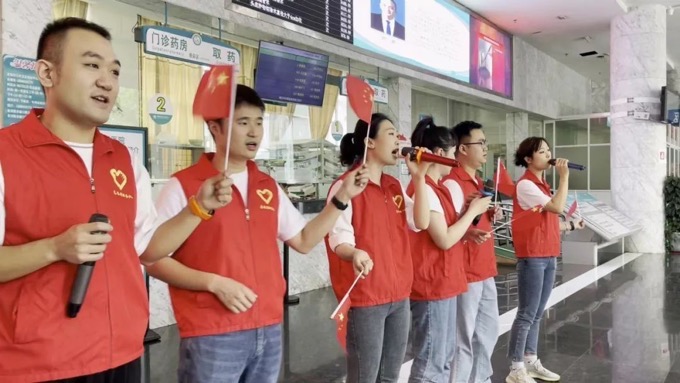 “請(qǐng)黨放心 強(qiáng)國復(fù)興有我”快閃活動(dòng),近30余名志愿者和醫(yī)務(wù)人員在門診大廳演唱《少年》,共同表達(dá)了對(duì)偉大中國共產(chǎn)黨的傾情禮贊與真情祝福。