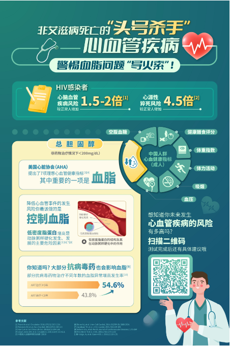 隨著抗反轉(zhuǎn)錄病毒治療(ART)的廣泛應(yīng)用,使人類免疫缺陷病毒(HIV)感染者病死率迅速降低,預(yù)期壽命延長(zhǎng)。但同時(shí)非艾滋病定義性疾病(NAD),如心血管疾病(CVD)的發(fā)病率呈上升趨勢(shì),成為了目前影響HIV感染者生存質(zhì)量和預(yù)后的主要原因。因此HIV感染者血脂管理對(duì)于預(yù)防心血管疾病的發(fā)生至關(guān)重要。
